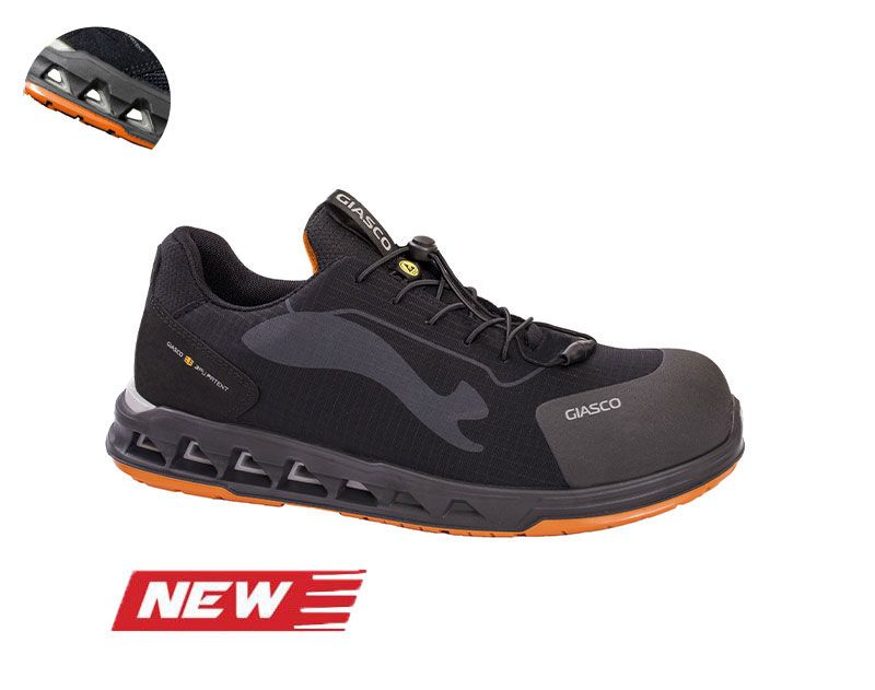 Plitka zaštitna cipela napravljena od čvrstih vlakana i od prozračne i neabrazivne WPA tkanine. TPU kapa u zoni prstiju veoma otporna na habanje. GIASCO 3PU PATENT u potpetici pruža stabilnost, udobnost i lakoću cipele. Mekan, postavljen i obložen jezik. Cipela poseduje mehanizam za brzo zatezanje i opuštanje pertli. Ova cipela dolazi i sa klasičnim pertlama. Obuća kompletno bez metalnih delova.