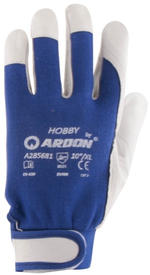 Rukavice kombinovane, nadlanica plavo platno , dlan kozje koža, manžetna sa čičak trakom